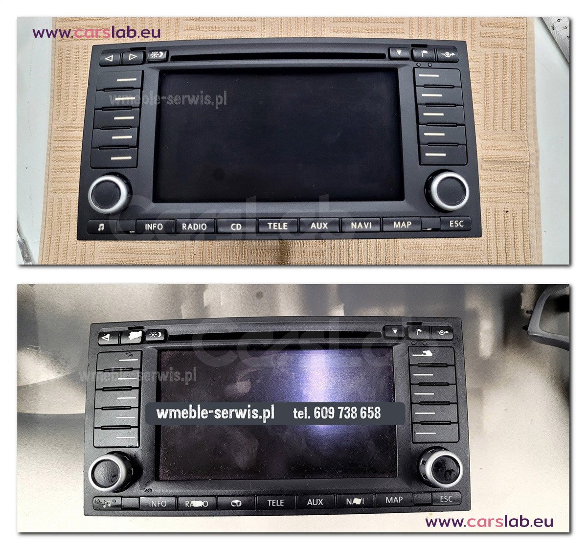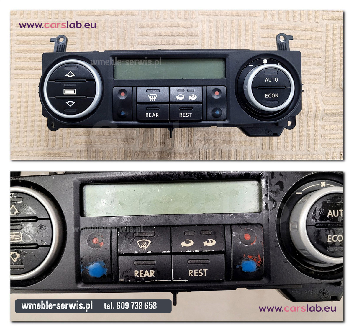 VW T5 dashboard restoration, Transporter air conditioning panel refurbishment, VW T5 button repair, sticky paint on VW dashboard, VW Transporter radio restoration, ESP button refurbishment, worn VW T5 icons, Transporter air conditioning repair in Poznań, comprehensive centre console restoration, restoration of coloured air conditioning symbols.